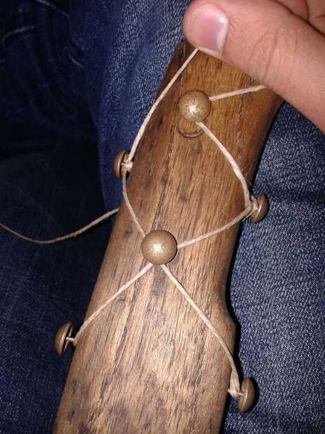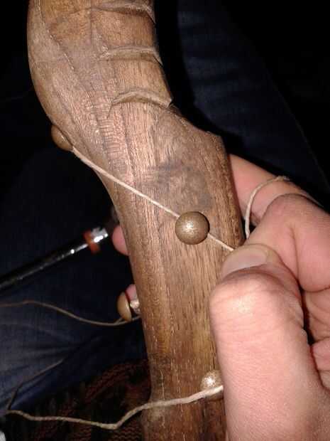 - Opté por usar cuerdas de cáñamo en el cuerpo que intersectan aproximadamente 90 grados por tachuelas de latón-mirar, que sostiene firmemente el cáñamo sin aflojar