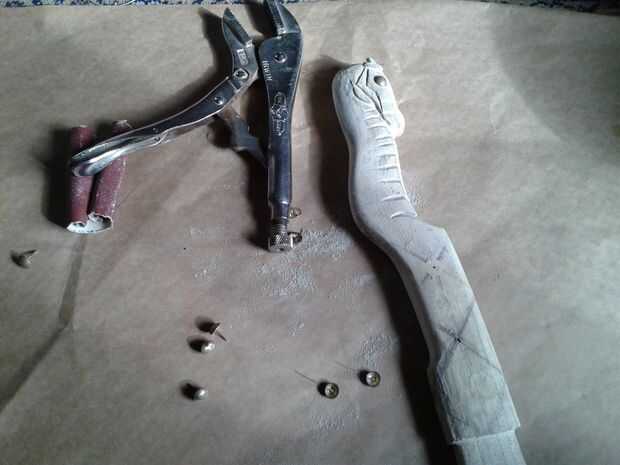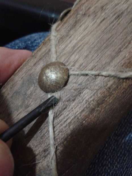 - Conseguir las tachuelas de latón en lugar, los poco al principio martillo de por lo que no se dobló