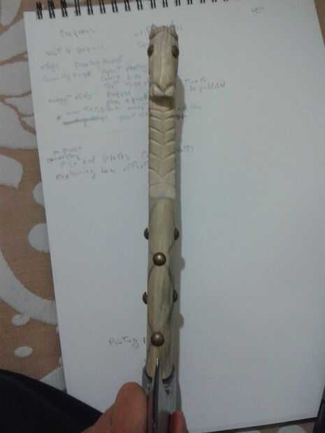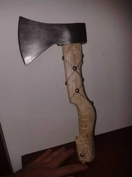 Cometí un error aquí, estaba tan emocionada de ver cómo se ve, por lo que arena el mango para que el hacha se ajuste, que es incorrecto, porque la cabeza debe ser martillada en el mango para hacer un buen agarre, me las arreglé para encontrar una solución para esto, ahora: