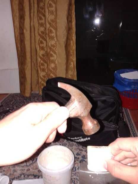 - Al llegar sobre la mitad de la cuña, empezar a martillar la cuña más o menos con el poder