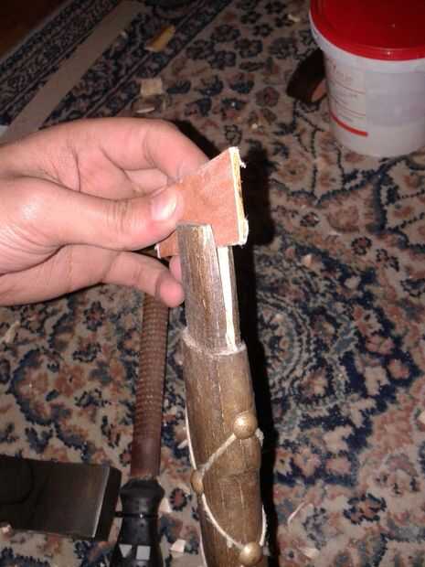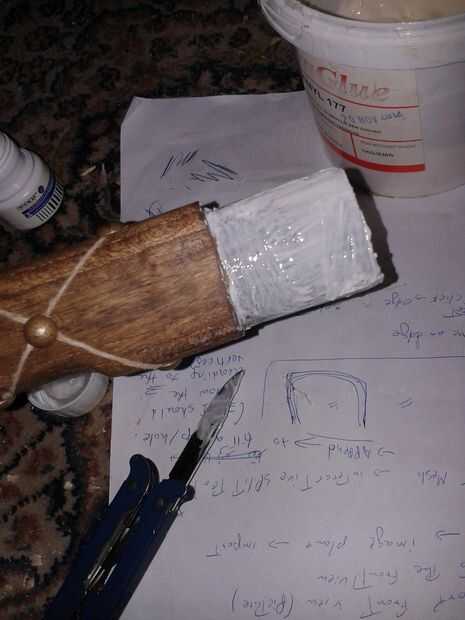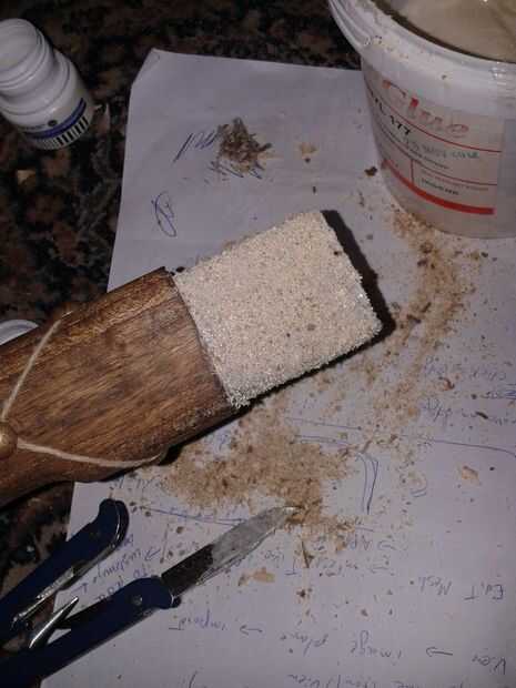 - Aumentar el tamaño del mango mediante la adición de un desplazamiento, el ajuste del pegamento y cubrir con aserrín