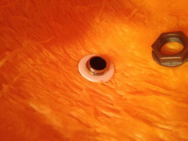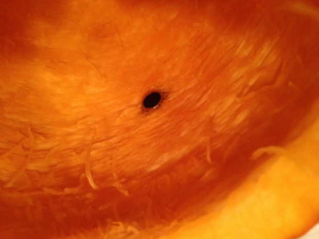 Si las paredes de la calabaza son demasiado gruesas para pasar la llave y sujetar la arandela, afeite la zona alrededor del interior agujero con un cuchillo o una cuchara.