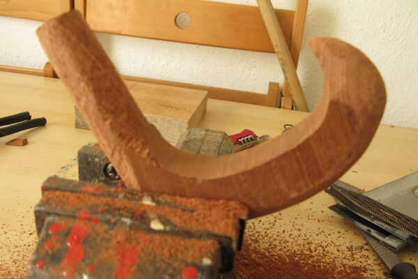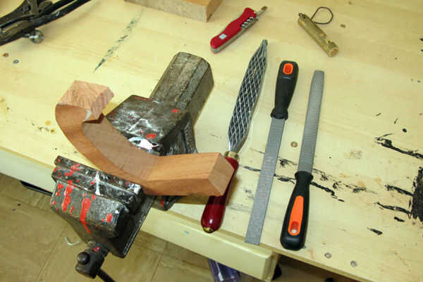 pic04 es el mango en la prensa listo para estar en forma. junto a él son l-r una escofina Sierra shinto (internet para aproximadamente £12), un plano woodrasp (£1Código)