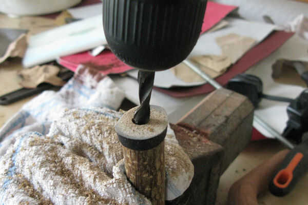 Foto 22 taladro en el centro de la caña lo suficientemente profundo para permitir que el resto del montante para adaptarse a