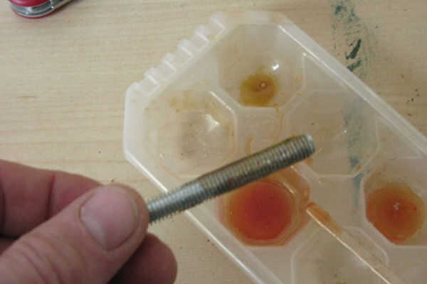 Foto 24 de resina. Tengo un molde de resina de fibra de vidrio mintiendo acerca de esto es genial usar pero es un color rosa, no es bueno si está visible. Alternativamente use un epoxi de buena calidad como este. Se trata de la tienda de £1. Hay suficiente para hacer los 3 palillos si se utiliza cuidadosamente