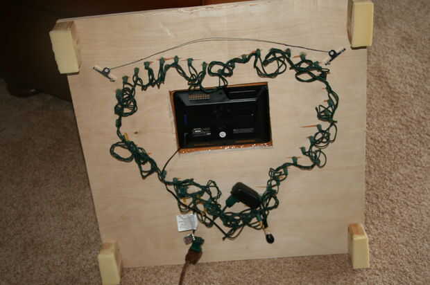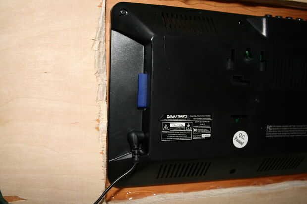 cortar un agujero para el marco de foto digital y solo pegan las luces led en el tablero