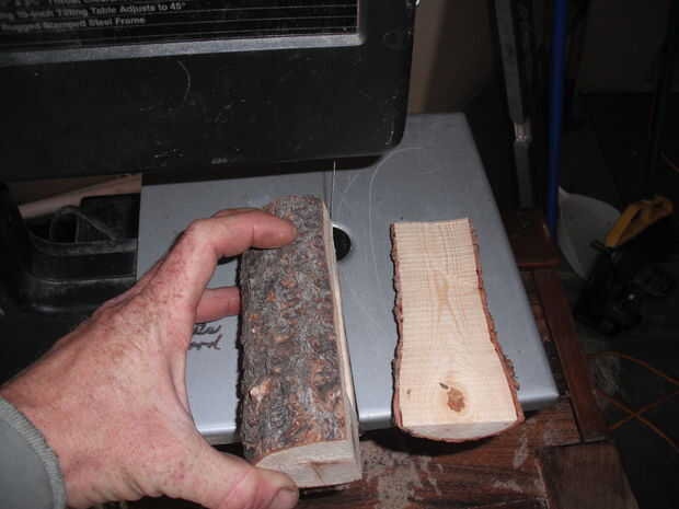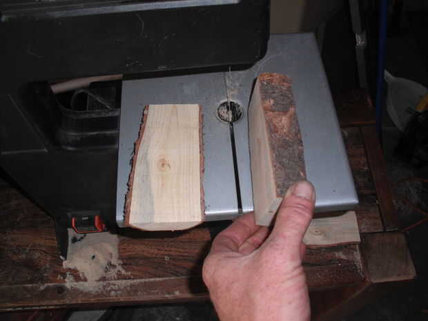Comience por cortar una pieza de madera 6 a 8 pulgadas de longitud. Usando una sierra de cinta cortar de un lado, luego voltear y corte el otro lado. Estos serán la parte superior e inferior. Elige el mejor lado de la tapa y la etiqueta para no mezclar todo para arriba. Dejar de lado estas piezas por el momento.