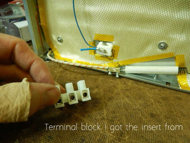 En este punto me encontré con un problema. Desde que tuve un rollo de alambre de alta temperatura horno estaba preocupado por reutilizar el cableado de alta temperatura existente. En mi apuro de destrozando cosas supuse que todo estaba conectado con conectores de presión normal que fácilmente podría reemplazar. Así que realmente no deja ninguna del viejo cableado en su lugar.