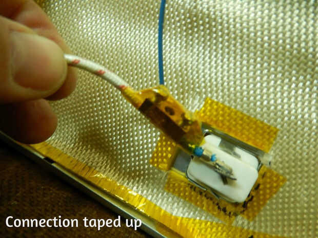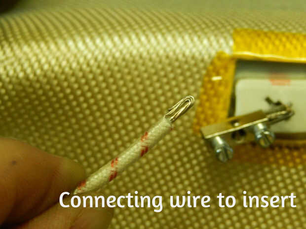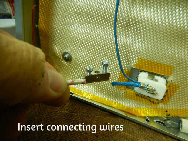 En un par de las conexiones del elemento no era bastante viejo alambre izquierda para conectarse. Capaces de aplastar un poco el conector engarzado existentes para poder montar en el inserto de la regleta. Otra vez lo envolvió con cinta del Kapton para la protección.