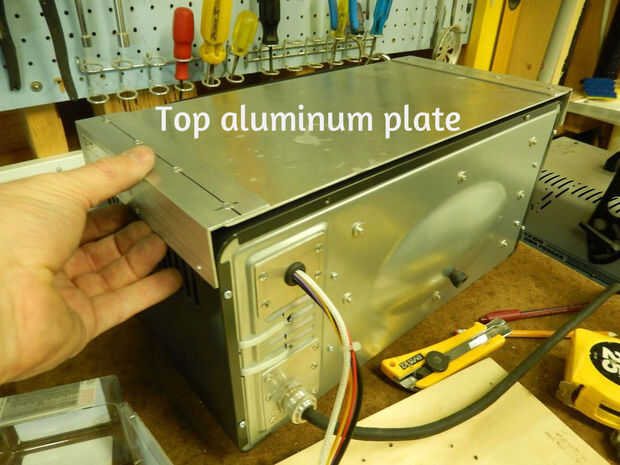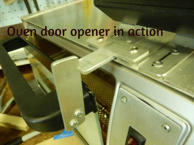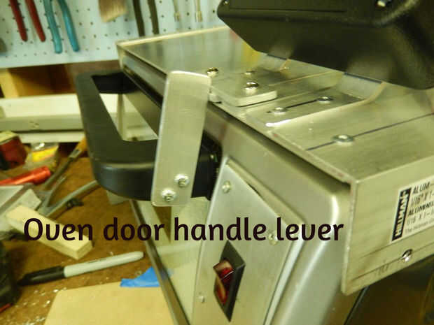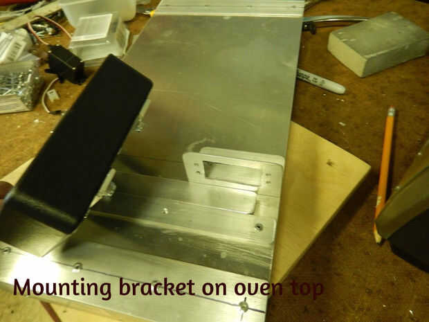 Terminé usando algunos gran ángulo y hoja de aluminio para hacer un estante tipo panel superior adicional. Esto me dio una base decente para montar el controlador y un lugar decente para montar el mango. También hizo más fácil montar un mecanismo para abrir la puerta con un servo. También proporciona algunas blindaje de calor cuando el horno está en funcionamiento.