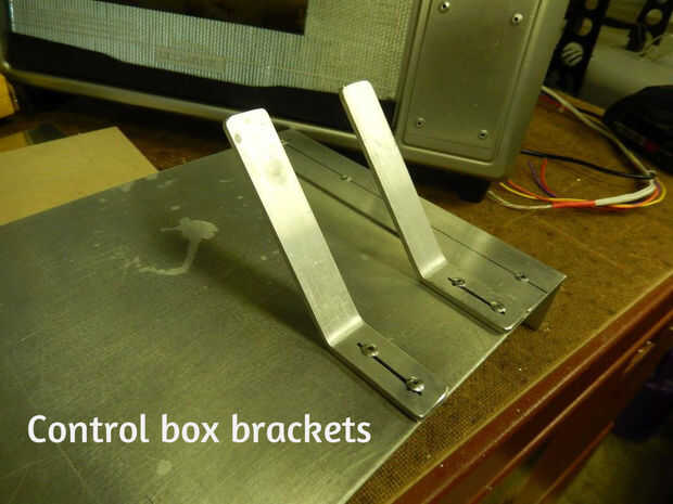 Para montar la caja de control I cortar algunos para algunas longitudes de material de aluminio de 1/8 "x 3/4" y había doblado en un ángulo de 45 grados. Esto le permite ver la pantalla LCD cuando la unidad está funcionando.