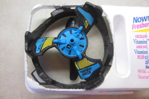 La idea del diseño básico del proyecto era similar a un helicóptero Chinook. Dos propulsores levantar el avión del suelo, girando en direcciones opuestas para equilibrar en spinning. Decidí usar un cartón de huevo de espuma como el mainframe para mi proyecto, ya que es bastante ligero y duradero. La parte delantera de la hoverboard mini tendría el Vectron onda atada, como se muestra. La parte posterior de la hoverboard tendría el funcionamiento interno de la RollerCopter Unido. Yo planeaba controlar el avión con el control remoto de la RollerCopter.