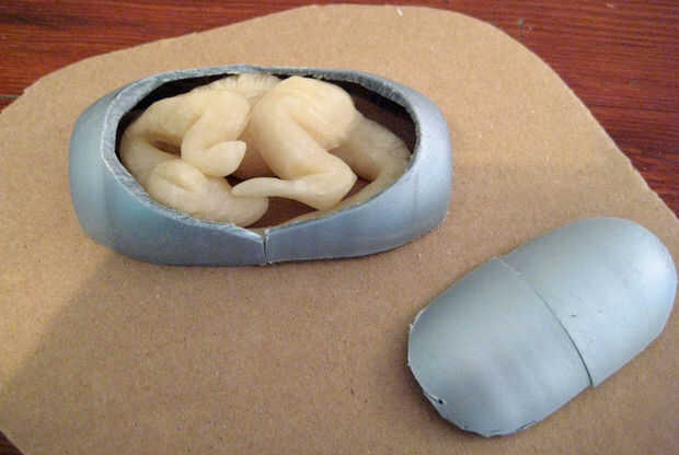 Asegúrese de que las dos mitades del huevo abierto coinciden y recortarlas si es necesario.
