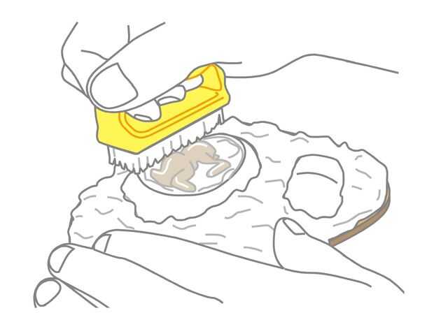 Cuando el relleno es sobre todo seco, pero antes de que sea duro, a escoger en él con un palillo o un destornillador pequeño. La arcilla de Bake (hornear) del horno es muy resistente y no dañe, para que realmente pueda ir a la ciudad en el relleno. es muy divertido y luego cada cierto tiempo mientras haces esto, cepillo sobre el fósil con un cepillo o un cepillo de dientes hasta que tenga la apariencia que desea, con sólo la cantidad correcta del embrión fósil reveló fregado.