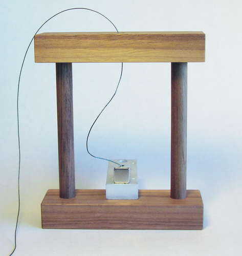 Más cerca los imanes son, el más fuerte la atracción será, pero demasiado y se convierte en menos evidente que el cubo está flotando en el espacio. Una separación de unos 3/4" parece funcionar bien. Usted va a necesitar cierta holgura para trabajar con al atar el nudo para el cierre de la parte inferior, así que el espaciador debe ser aproximadamente 1/4" de más gruesa que la separación deseada, una vez terminada.