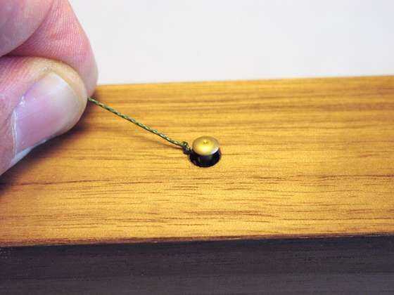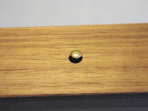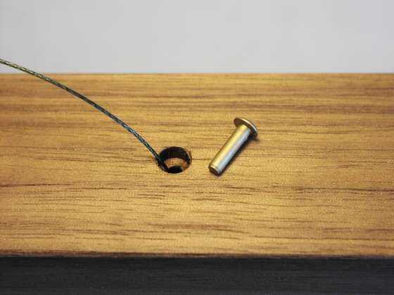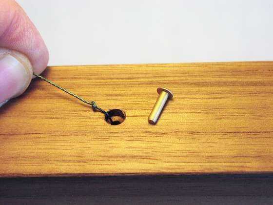 Tire el nudo hacia fuera de debajo de la cabeza del remache, recortar la línea exceso cerca del nudo y utilice una llama para fundir el final (como con el nudo en el pasador de horquilla). Asegúrese de que el remache oculta la línea de la vista, luego empuje hacia abajo hasta que la cabeza esté por debajo de la superficie de la madera. Un clip de papel viene en práctico si usted necesita empujar el remache nuevo.
