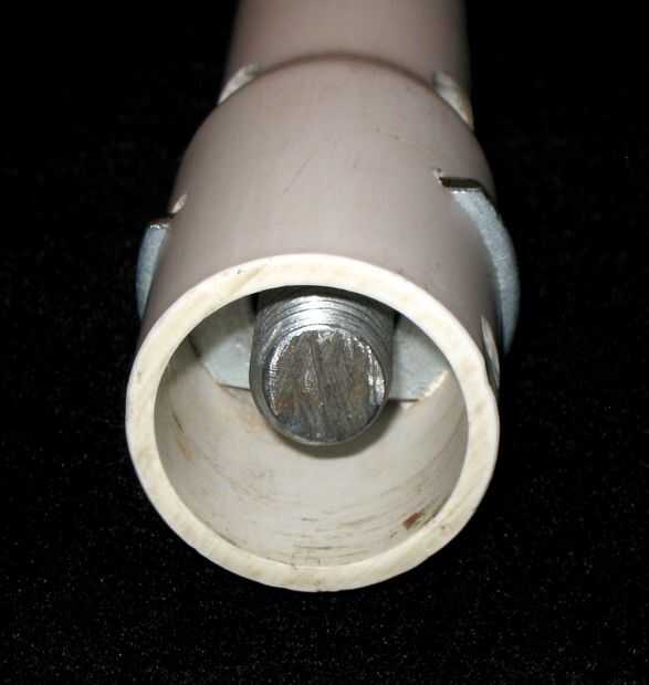 Mantener la cuña centrada a mano y deslice el perno y tuerca, rosca primero por la parte superior del tubo
