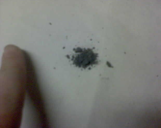 OK así que el motor, poner en un pedazo grande de papel en concreto o una superficie dura. pone a su lado, golpee suavemente la parte que está arriba con un martillo a partir de un extremo. debería ver el cemento o negro carga de frenado aparte. seguir rompiendo util el tubo está vacío.