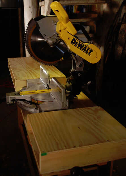 Su Sierra para cortar ingletes. Yo uso una sierra de inglete compuesto DeWalt 12 pulgadas.