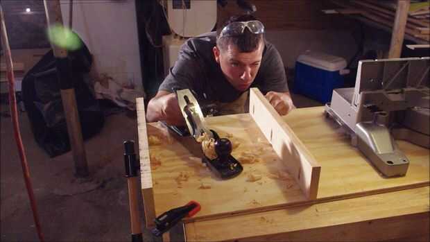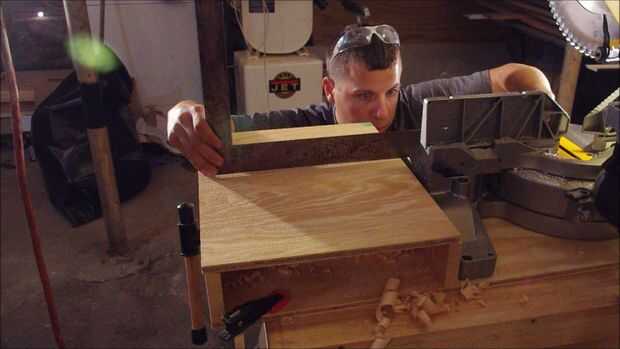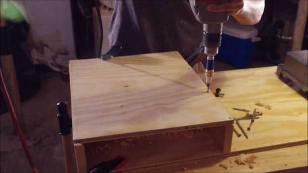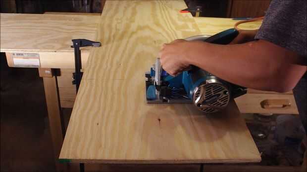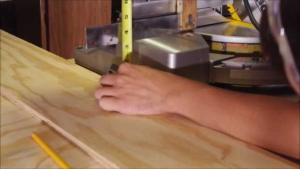 Corte la parte superior de madera contrachapada de derecha y sujete