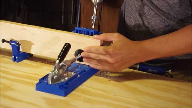 A continuación, puede marcar tres líneas para los agujeros de bolsada. Luego ajustar el Kreg jig de 1/2 material y taladrar tres agujeros en cada separador alineación con marcas. Estos se atornillan en la base de madera contrachapada y se ocultarán los agujeros así que asegúrese de que todos los agujeros de bolsada cara hacia adentro. Tornillo en un espaciador en el lado derecho y lejos de su base de madera terciada y otra de 12 de él.