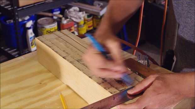 Ya que tus separadores probablemente ya no la anchura apropiada, corte todos los 5 de ellos hasta un poco más grande que su tamaño, 3 1/4 pulgadas en mi ejemplo, con una sierra de mesa o sierra de banda. Como en la mayoría de proyectos de carpintería – lo mejor es mantener las cosas en tamaño por lo que puede ser cortadas más adelante. Es un trabajo mucho más que agregar cuñas si las tablas no están suficientemente ancha como.