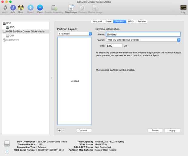 4. cambiar el nombre en "Sin título", elegir "Mac OS Extended(Journaled) en la opción"Formato".
