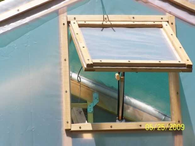 tengo abrelatas automático de la ventana no te caliente demasiado dentro y encajonado en un marco para ellos de madera de 1 pulgada y espaciadas a los extremos, adjunta una bisagra en la parte superior de la ventana, y cubrió la ventana con el plástico.