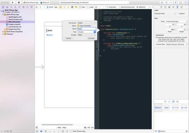 Lo que hiciste fue crear un IBOutlet. Esto indica al compilador que desea poder acceder a este elemento de la interfaz de usuario, y se está haciendo referencia a lo de "etiqueta". Luego utilizas el término "etiqueta" para referirse a lo más tarde al escribir realmente el programa.