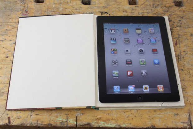 Los ganchos agregar alrededor de 2cm del grosor de la tableta por lo que su libro tiene que ser lo suficientemente gruesa como para contener ambos.