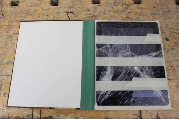 Haga una marca pequeña en cada esquina del libro donde desea su tablet que se encuentra.