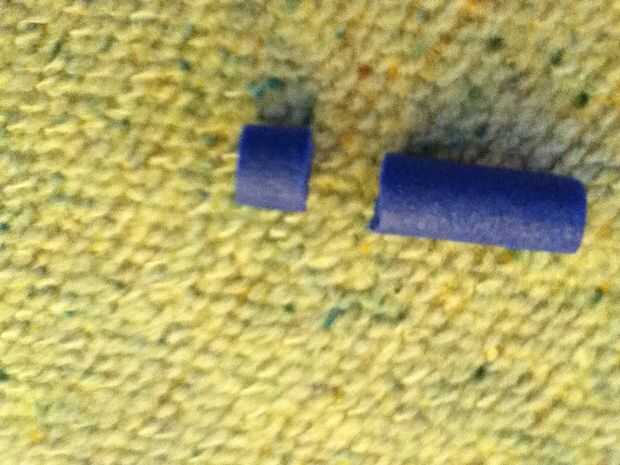 Corte de un centímetro de nerf dart apagado el exceso dardo que tenía. Cortan a lo largo de un lado de esta pequeña ronda por lo que se abre.