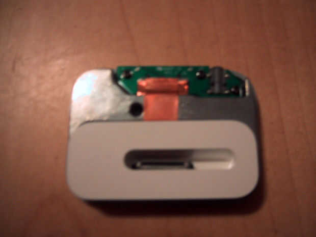 Primero haz "guts" (imagen 1 del ipod mini dock), añadir al iPod nano dock universal adaptador (imagen 2) y coloque de manera que el agujero en el adaptador se sienta alrededor del conector dock de las agallas, su resultado debería parecerse a cuadro 3. Asegúrese de orientar correctamente el adaptador, añadir tu nano y hacer que todo encaje (figura 4), si el muelle está en condiciones de funcionamiento que el nano hará un sonido cuando se conecta a él, incluso si el muelle no está enchufado algo.