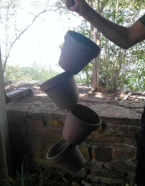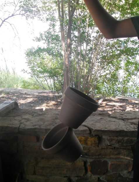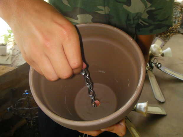 Creas o no, es más difícil paso. Cuelgue las ollas fabricarán, como se muestra en las fotos. Tenga cuidado de no dejar que las macetas que caen en las otras ollas mientras que apilarlos, ya que se podría romper. Cuidadosamente levante en el gancho y llenarlos. Es mejor encontrar el lugar permanente desea las macetas para colgar; después están llenos son pesadas y difíciles de mover y colgar otra vez. Usted puede elegir macetas de tamaño diferentes, asegúrese de que la tapa es lo suficientemente abierta como para las plantas a crecer a través de. Por ejemplo, usted podría colgar un bote pequeño en la parte superior, una maceta mas grande en fondo y tamaños entre los dos en el medio para crear un estilo en cascada.