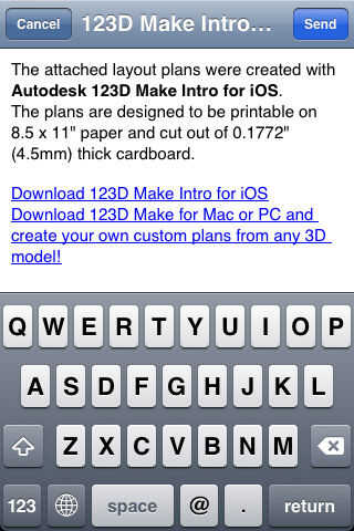 Cuando estés cómodo con el modelo que usted ha hecho, la aplicación generará un documento de plan de corte por láser. Estos planes a sí mismo desde la aplicación de correo electrónico.