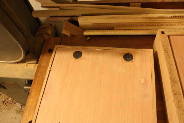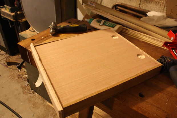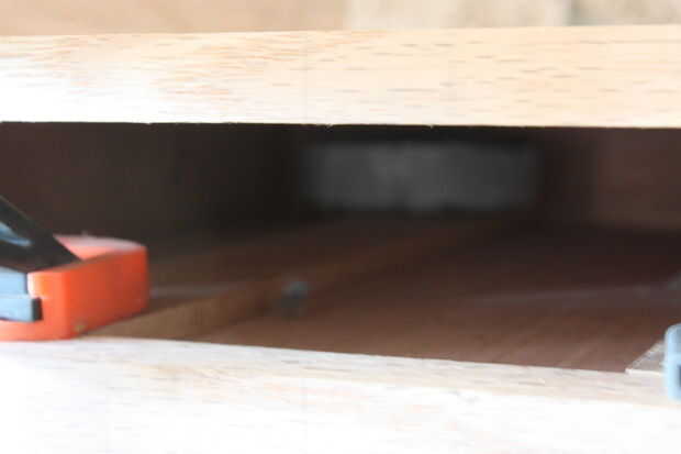 Plano hacia abajo la parte superior de las piezas que acaba de hacer por lo que se deslizan en el cajón con una pequeña sala de repuesto. Acabado de lijar las partes.