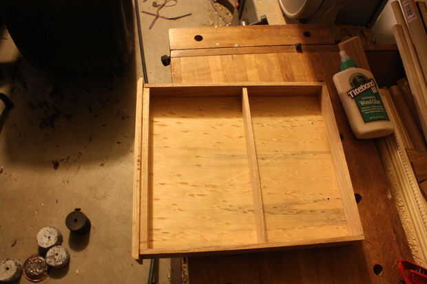Pegamento y pin en la parte inferior del cajón. Luego el pegamento y pin el divisor en el cajón.