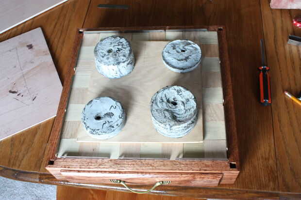 Sujetar las tejas con algunos pesos hasta que se seque.