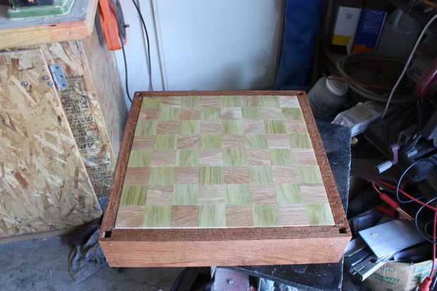 Enmascare los rieles con violación para protegerlos. Hice 2 capas. Comience con grano 80 y lije la superficie de juego hasta que todas las fichas son incluso uno con el otro. Luego avance a través de 100, 120 y 220 para un final agradable.