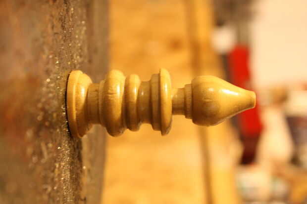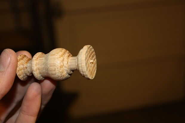 Lijar la pieza con grano 120. Cortar tiras más delgadas para entrar en los espacios estrechos. Después de lijar 120, aplique una fina capa de agua para elevar el grano de la madera y dejar secar completamente. Cuando está seco lije con grano 220. Puesto que la pieza es todo el grano final, el agua será pre levantar el grano por lo que al hacer la capa de acabado, el grano no levante entonces, estropear el acabado y causando más trabajo!