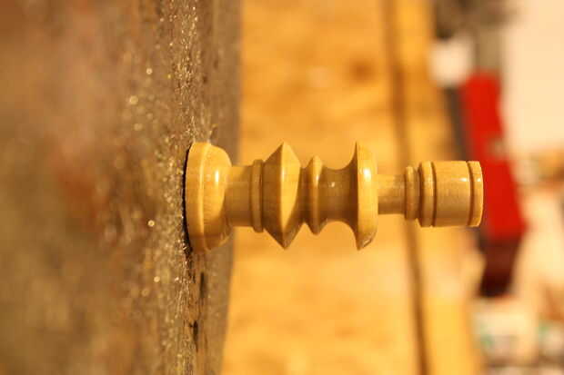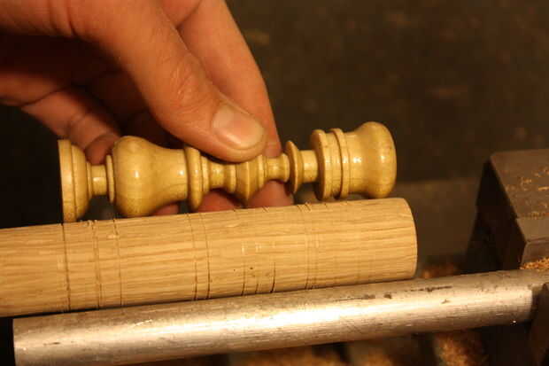 Hacer un dibujo o una pieza de ensayo del tamaño que desee y mida la altura con los divisores y escriba en su espiga 1" mientras que es en el torno. Trabajar su camino hacia abajo de su parte para marcar apagado todos los cortes principales.