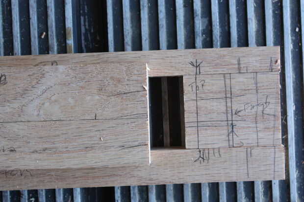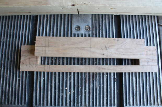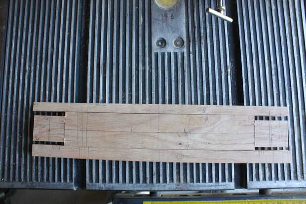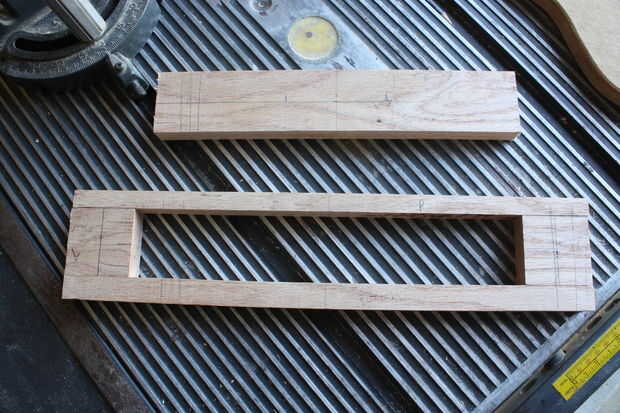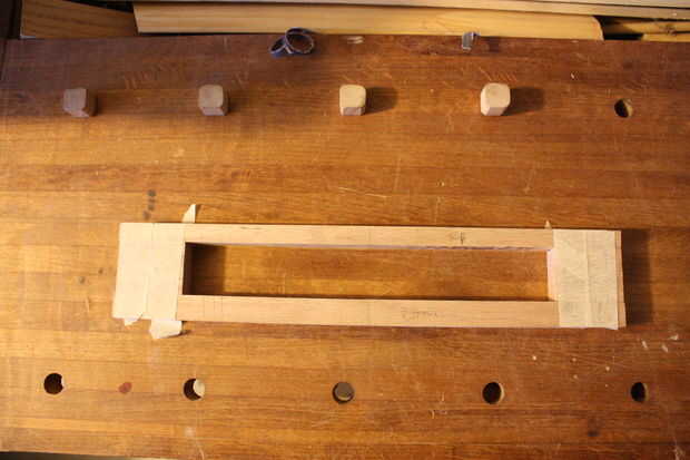 Tomar la pieza larga de 1 "x 4" y rip 1/2" de la parte superior e inferior. Tome el pedazo de centro y de corte transversal a un rectángulo del ancho de la cara del cajón (hice 11"). Usted tendrá un marco y un frente de la gaveta.