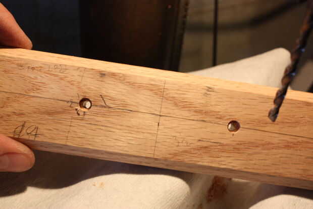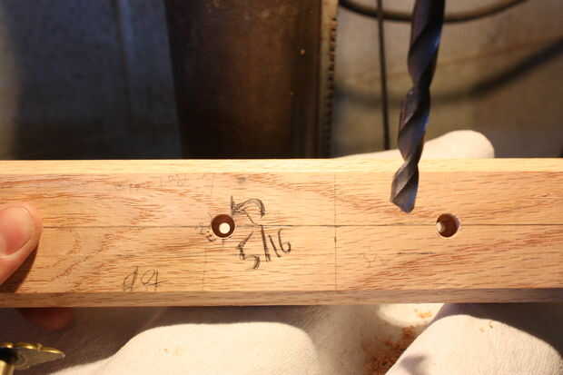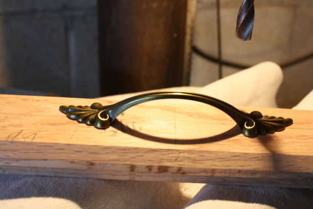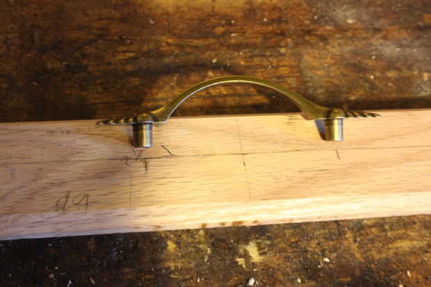 Encontrar el centro del cajón y marque los orificios para la tracción. Perfore un orificio de 5/32 para los tornillos a través de todo el camino. Perfore un agujero de 5/16 parcialmente por lo que la atracción se monta al ras con la cara (opcional).
