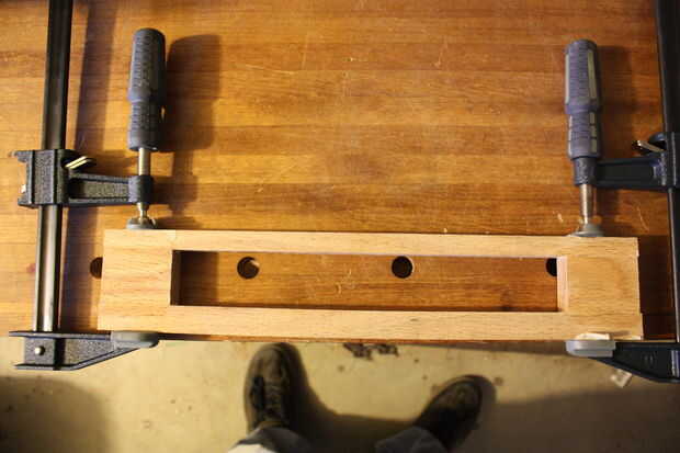 Tomar el marco de las abrazaderas e insertar la cara del cajón en el bastidor. Deslice en alguna acción de 1/4" a cada lado. Debe ser algún juego para que el cajón se desliza libremente. Si no hay ninguna decantación, rebaje un poco más de los rebajos en los lados de la cara del cajón.