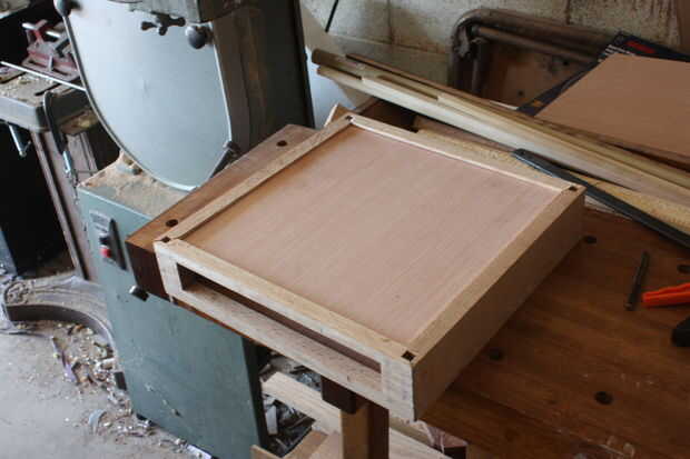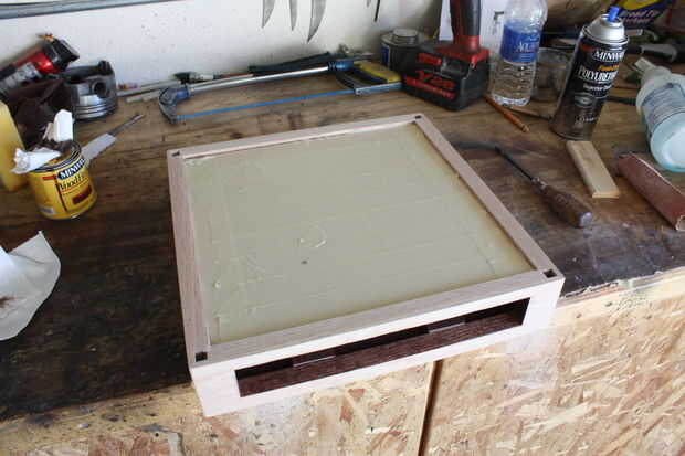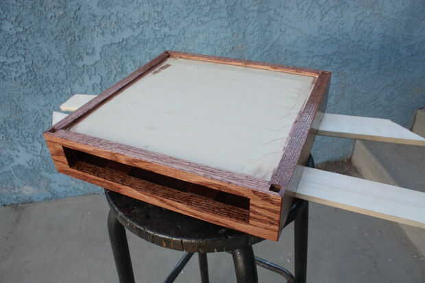 Acabado arena y los interiores de los lados de la mancha y pedazos de la capa. No consigue ninguna mancha en las superficies de cola! Me olvide del interior de la mancha aquí y no podía obtener mi mano en la ranura de cajón a satén.