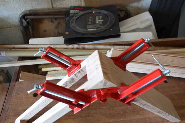Pegar las esquinas, abrazadera, clavo pin y dejar secar para cada esquina.