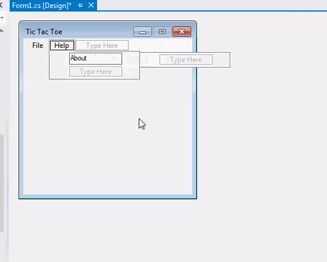 Haga clic en ' archivo '(in the form) y agregar sub menús como "New game" y "Salir". Y en la ayuda añadir un submenú llamado "Acerca de"