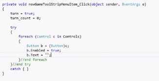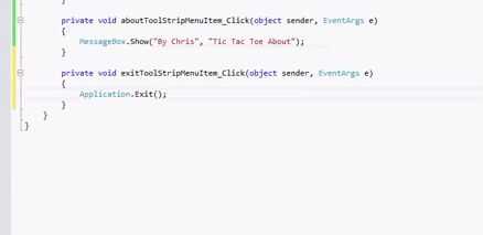 5. ahora semejantemente como "Acerca de" y "Salida" haga doble clic en "New Game". En "privada newGameTool... "Tyep este código: