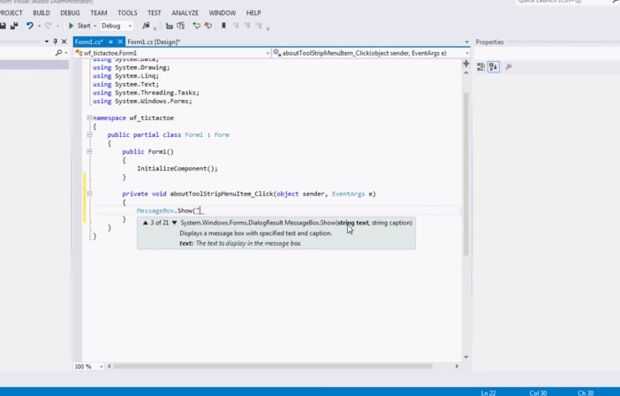 Cuando usted escriba MessageBox.Show (se mostrará un conjunto de opciones de cadena "21". Hacer que seleccione el 3er. (véase la imagen de arriba para más claridad).
