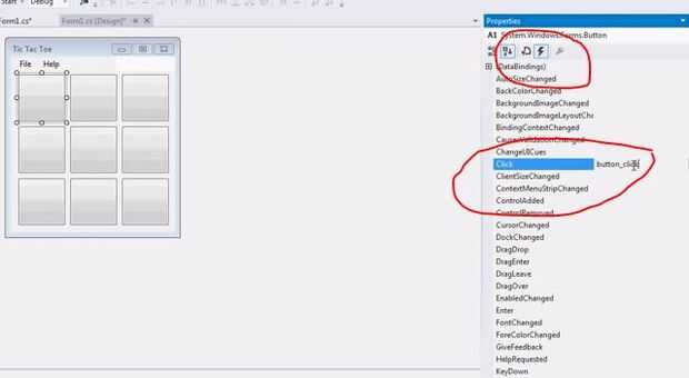 2. en el formulario haga clic en cualquiera del botón. En las "propiedades" hay un icono de "Thunder Bolt", haga clic en él.